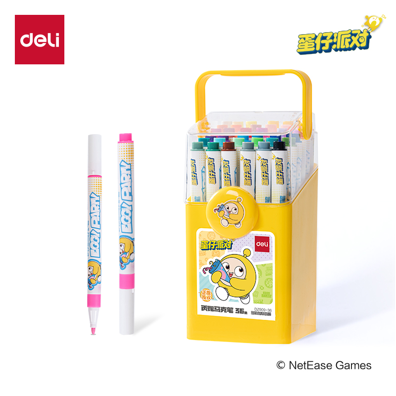 得力DZ909-36色蛋仔派对PP桶装圆杆丙烯马克笔(混)(6桶/中)