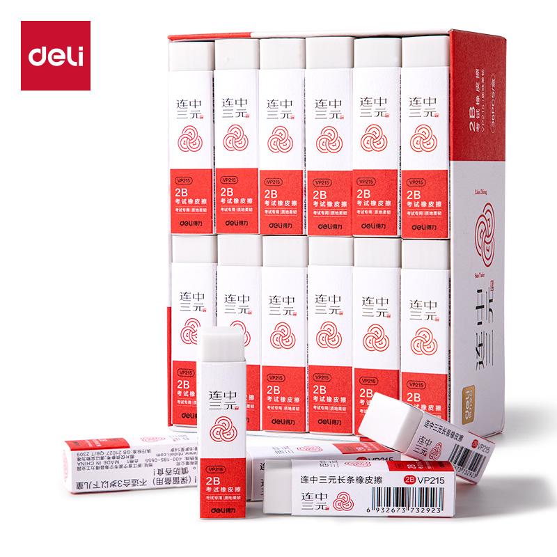 得力VP215-考试系列连中三元长条橡皮(长款)(36块/盒)