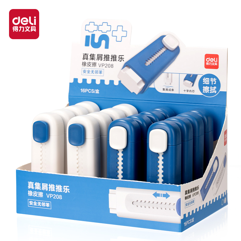 得力VP208-蓝白款真集屑推推乐橡皮擦(混)(16块/中)